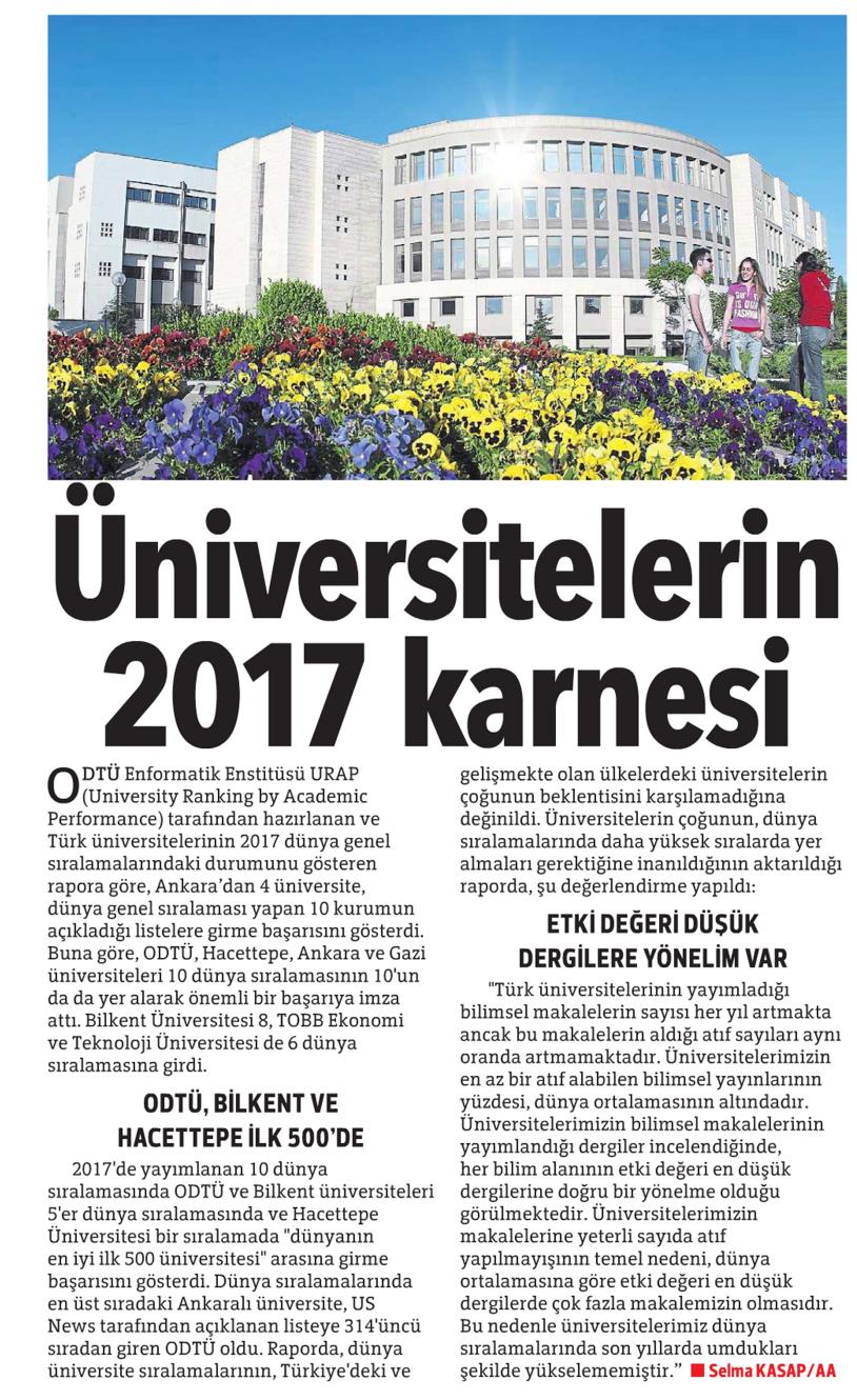 ÜNİVERSİTELERİN 2017 KARNESİ