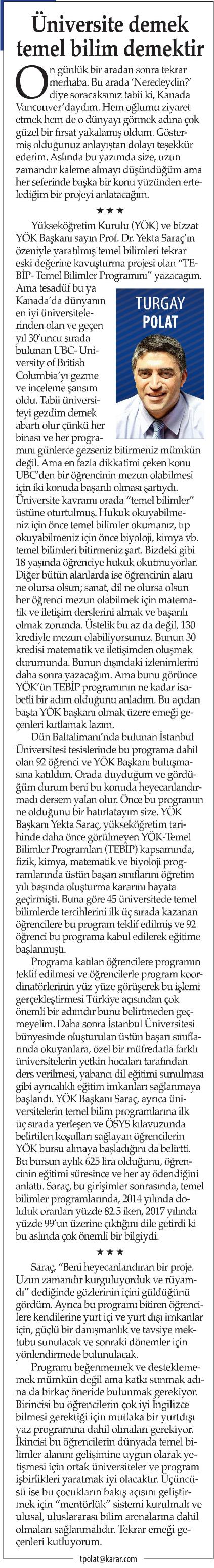 ÜNİVERSİTE DEMEK TEMEL BİLİM DEMEKTİR