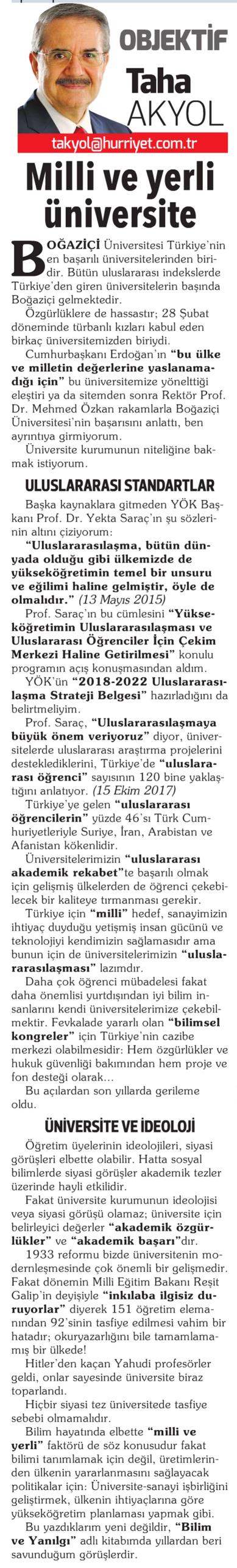 MİLLİ VE YERLİ ÜNİVERSİTE