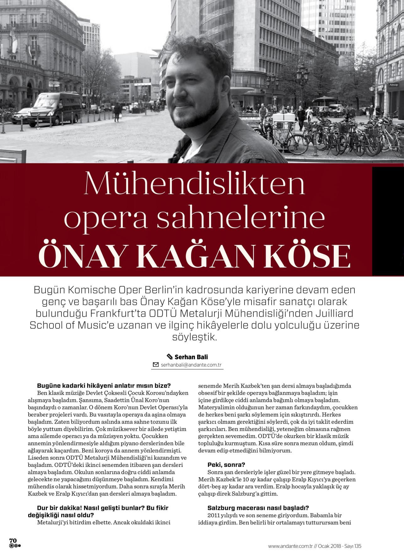 MÜHENDİSLİKTEN OPERA SAHNELERİNE ÖNAY KAĞAN KÖSE
