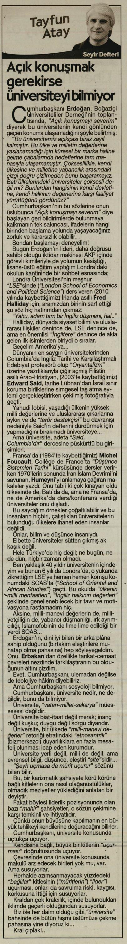 AÇIK KONUŞMAK GEREKİRSE ÜNİVERSİTEYİ BİLMİYOR