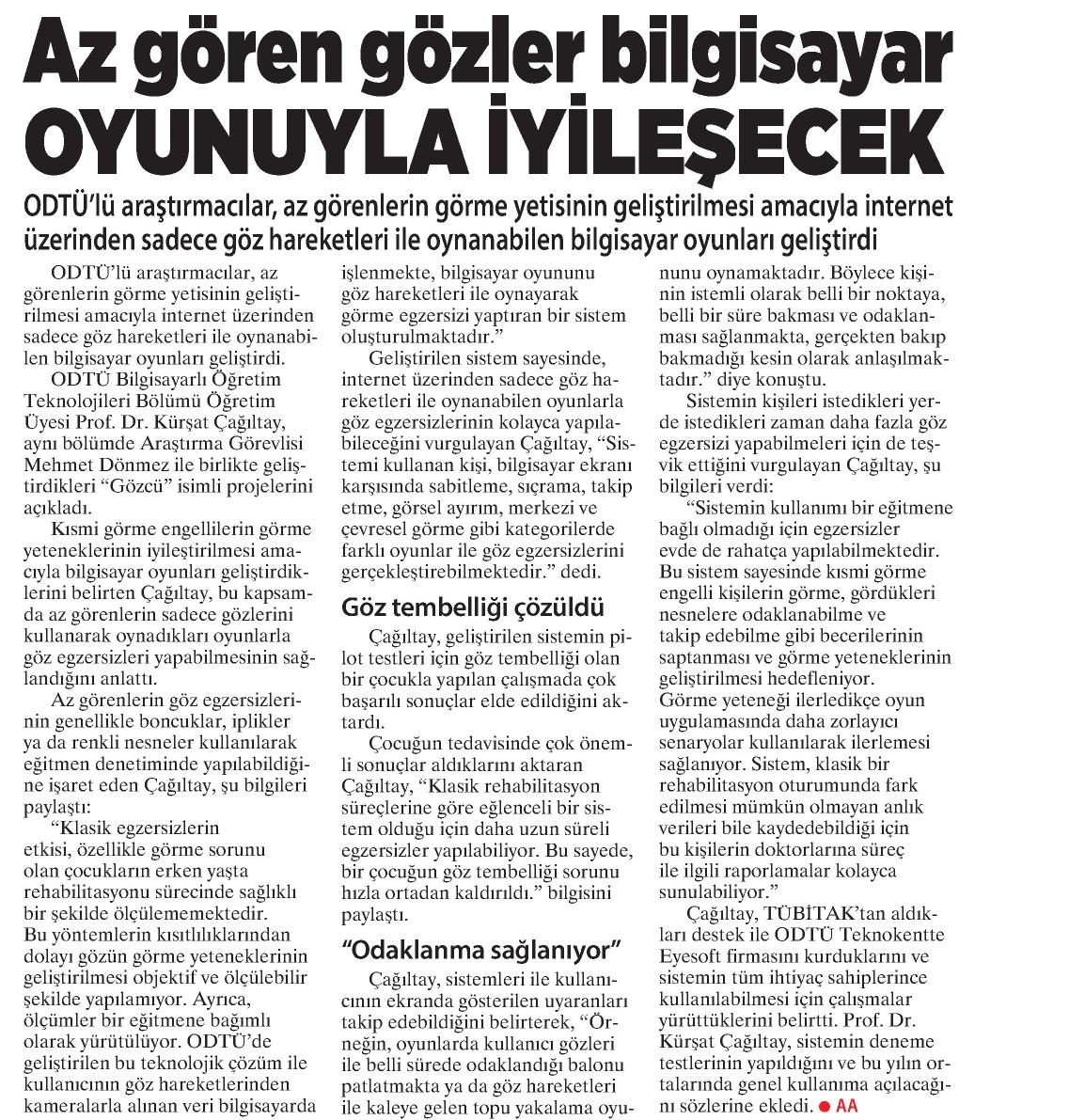 AZ GÖREN GÖZLER BİLGİSAYAR OYUNUYLA İYİLEŞECEK