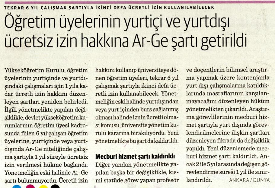 ÖĞRETİM ÜYELERİNİN YURTİÇİ VE YURTDIŞI ÜCRETSİZ İZİN HAKKINA AR-GE ŞARTI GETİRİLDİ