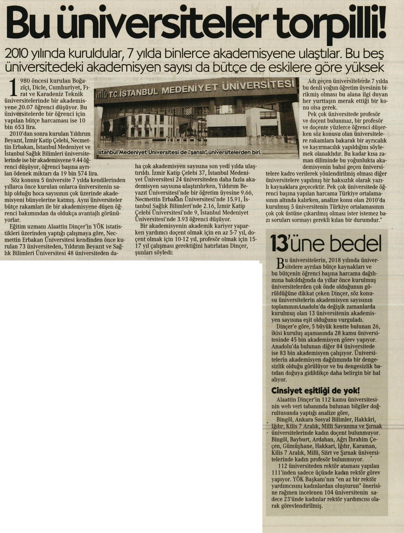 BU ÜNİVERSİTELER TORPİLLİ!