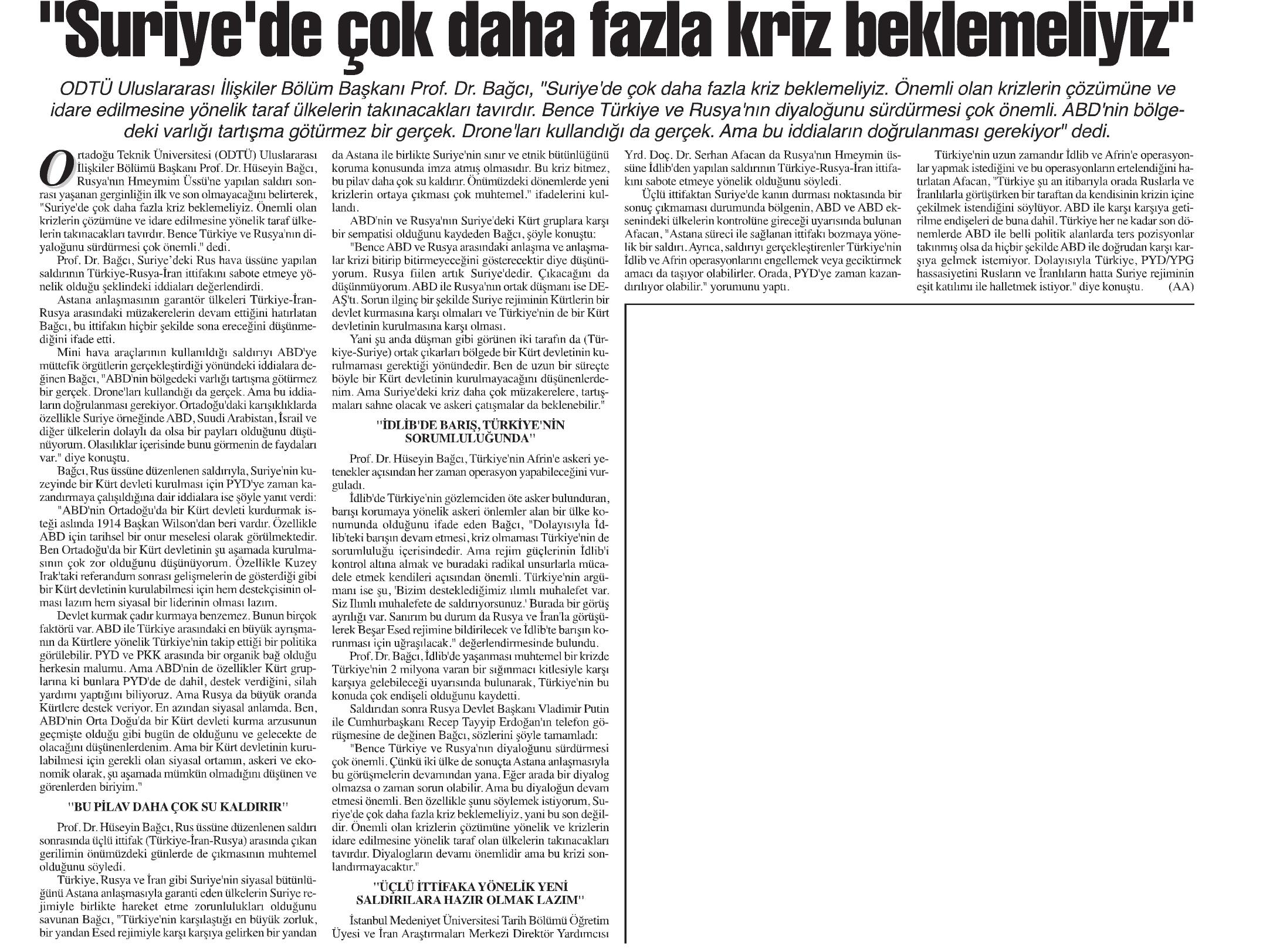 "SURİYE'DE ÇOK DAHA FAZLA KRİZ BEKLEMELİYİZ"