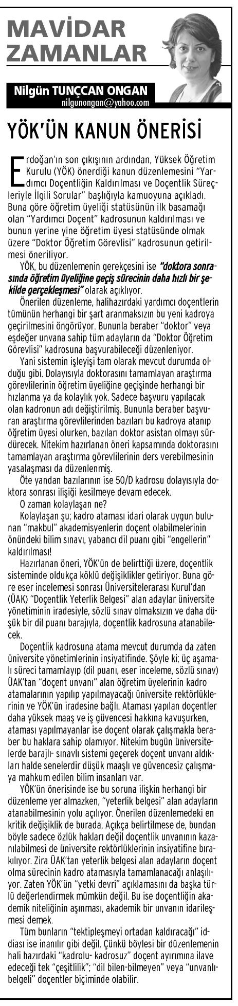 YÖK'ÜN KANUN ÖNERİSİ