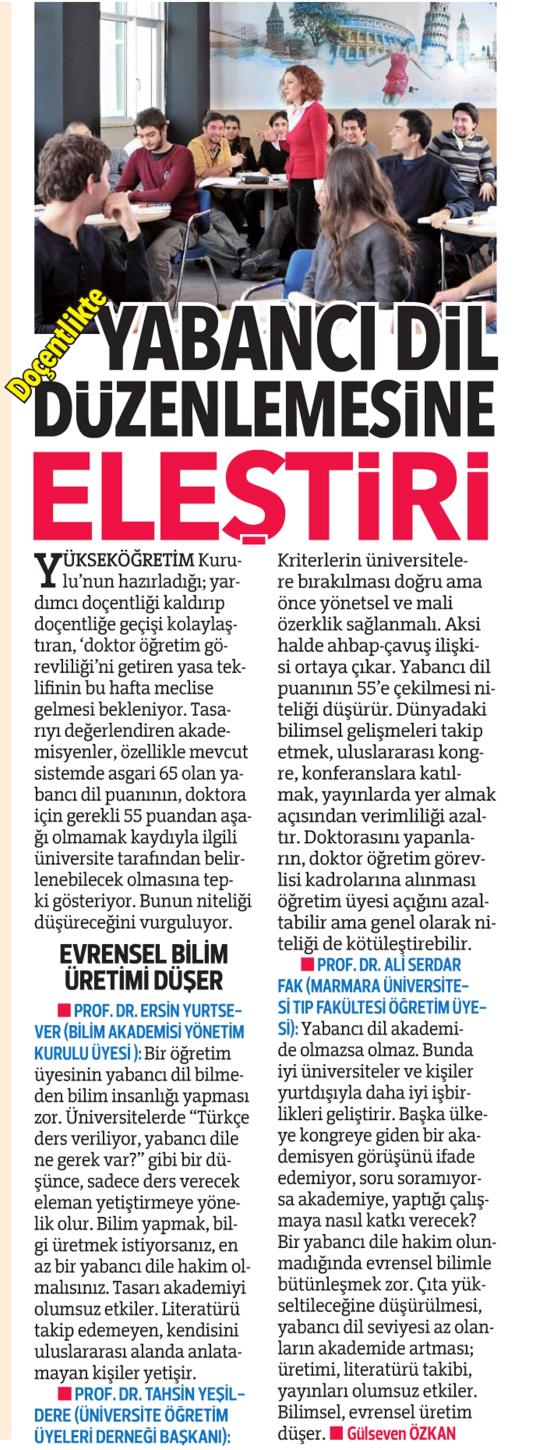 DOÇENTLİKTE YABANCI DİL DÜZENLEMESİNE ELEŞTİRİ