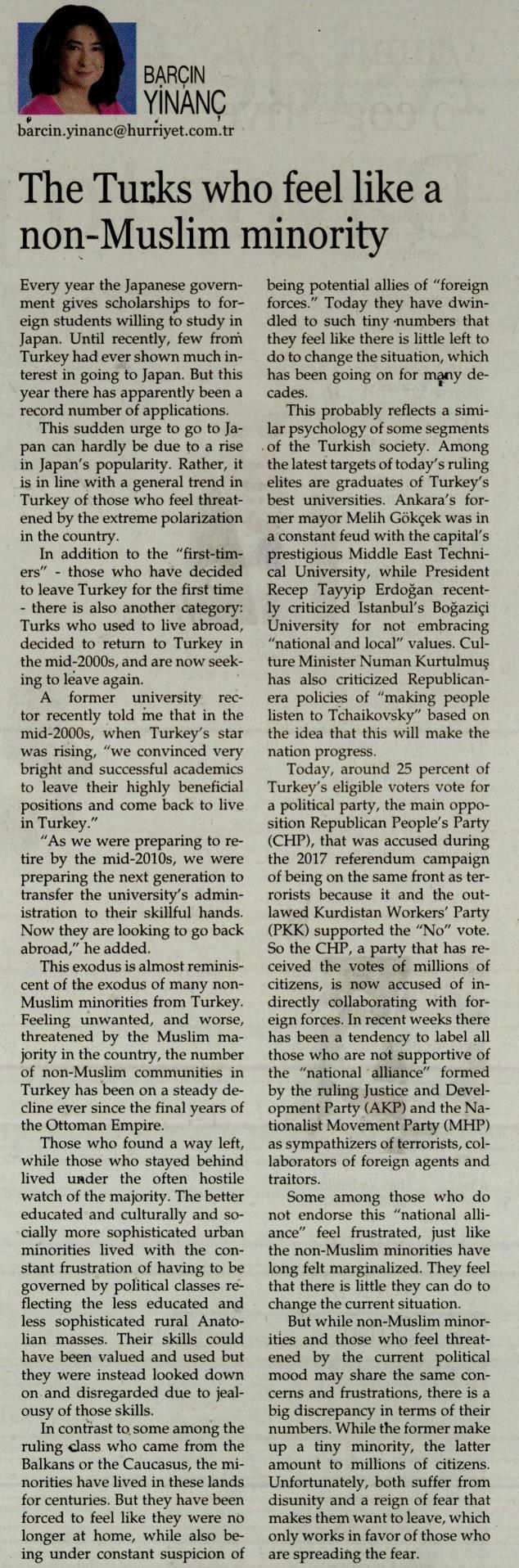 THE TURKS WHO FEEL LIKE A NON-MUSLIM MINORITY