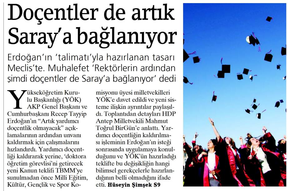 DOÇENTLER DE ARTIK SARAY'A BAĞLANIYOR