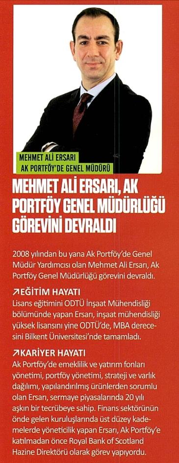 MEHMET ALİ ARSARI, AK PORTFÖY GENEL MÜDÜRLÜĞÜ GÖREVİNİ DEVRALDI