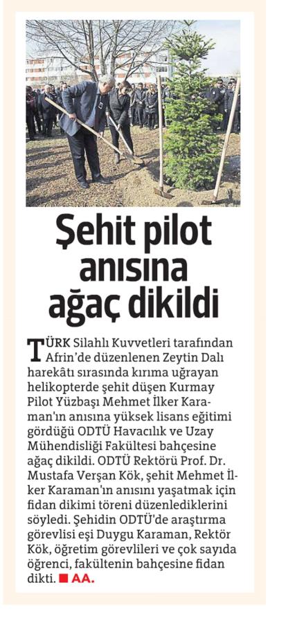 ŞEHİT PİLOT ANISINA AĞAÇ DİKİLDİ