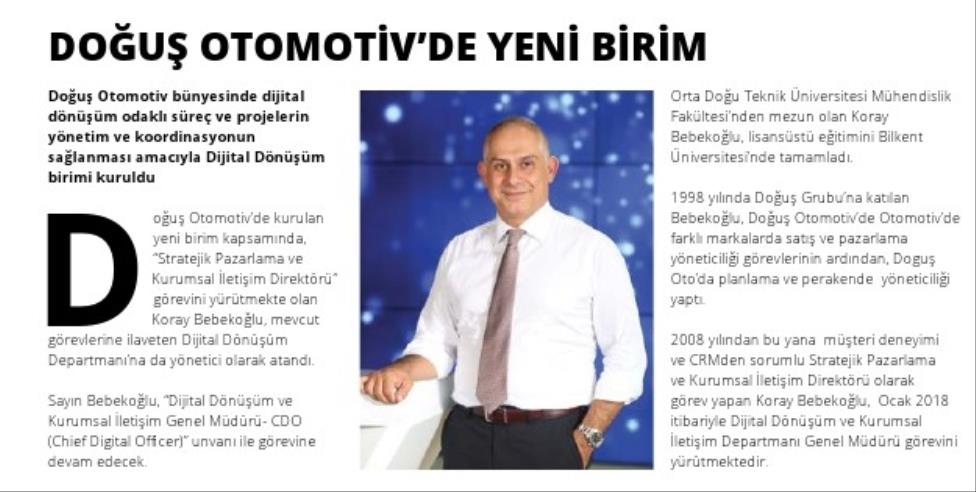 DOĞUŞ OTOMOTİV'DE YENİ BİRİM