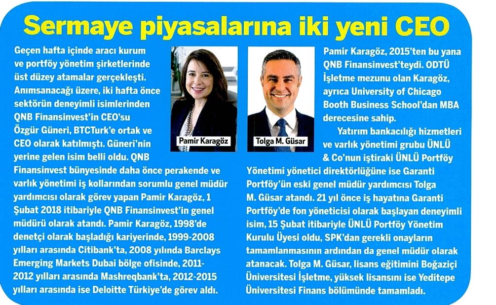 SERMAYE PİYASALARINA İKİ YENİ CEO