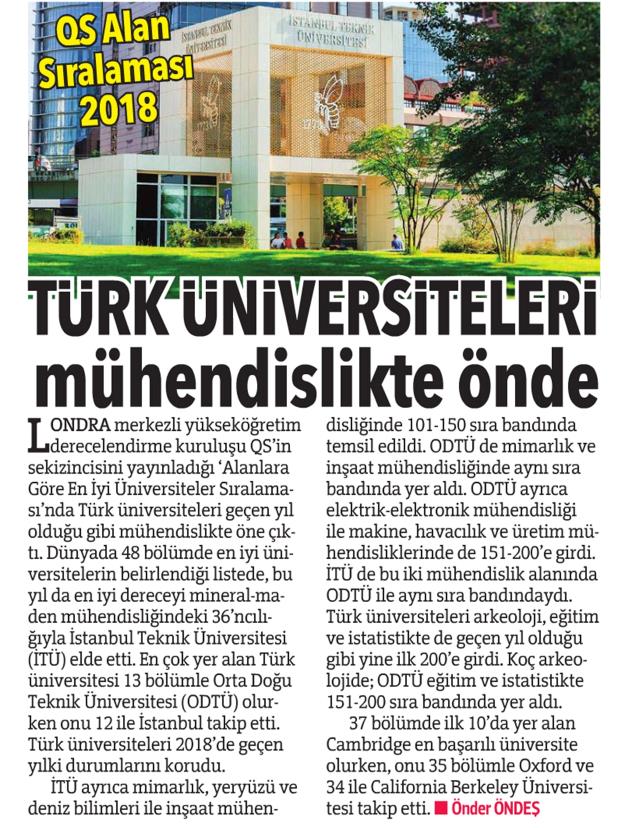 TÜRK ÜNİVERSİTELERİ MÜHENDİSLİKTE ÖNDE