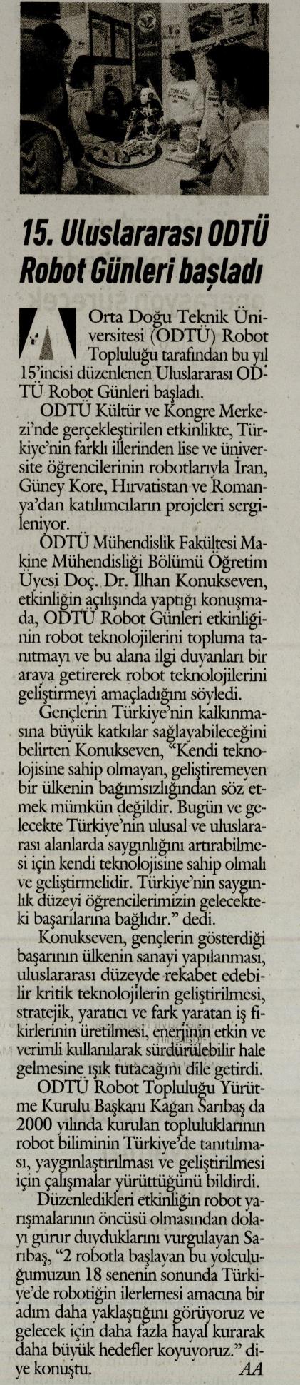 15. ULUSLARARASI ODTÜ ROBOT GÜNLERİ BAŞLADI