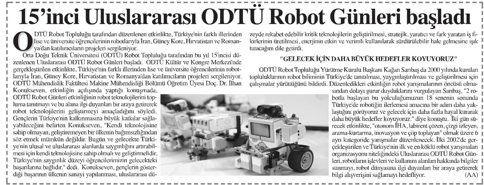 15'İNCİ ULUSLARARASI ODTÜ ROBOT GÜNLERİ BAŞLADI