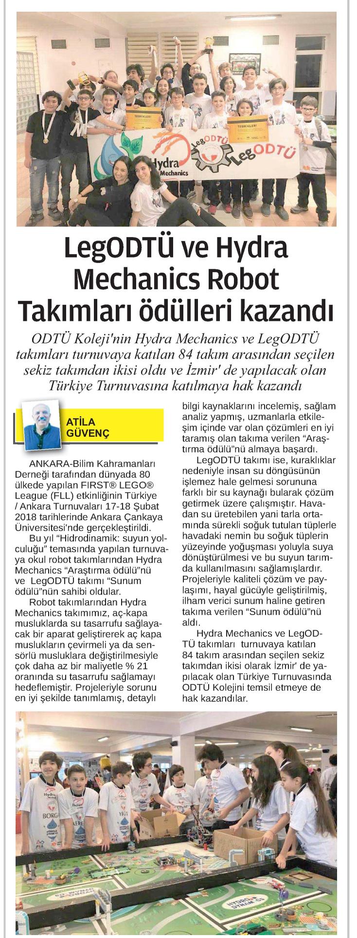 LEGODTÜ VE HYDRA MECHANİCS ROBOT TAKIMLARI ÖDÜLLERİ KAZANDI