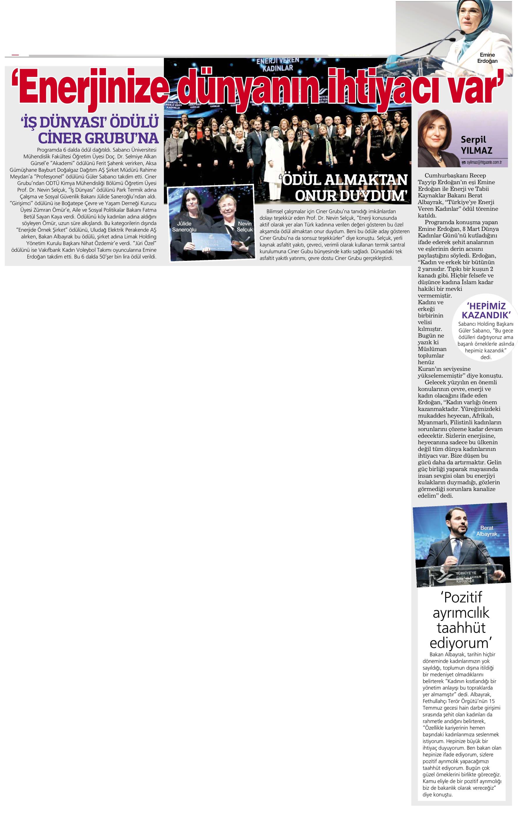 İŞ DÜNYASI ÖDÜLÜ CİNER'E [Devam - 1]