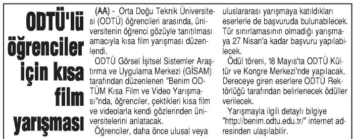 ODTÜ'LÜ ÖĞRENCİLER İÇİN KISA FİLM YARIŞMASI