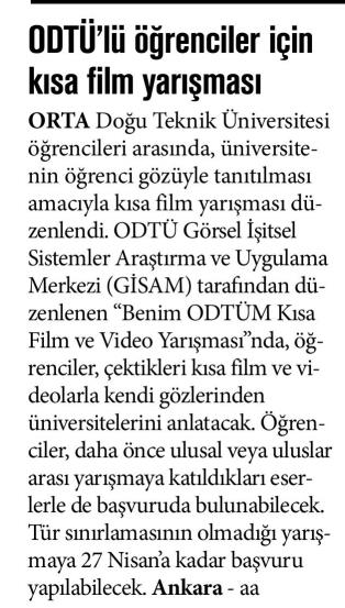 ODTÜ'LÜ ÖĞRENCİLER İÇİN KISA FİLM YARIŞMASI