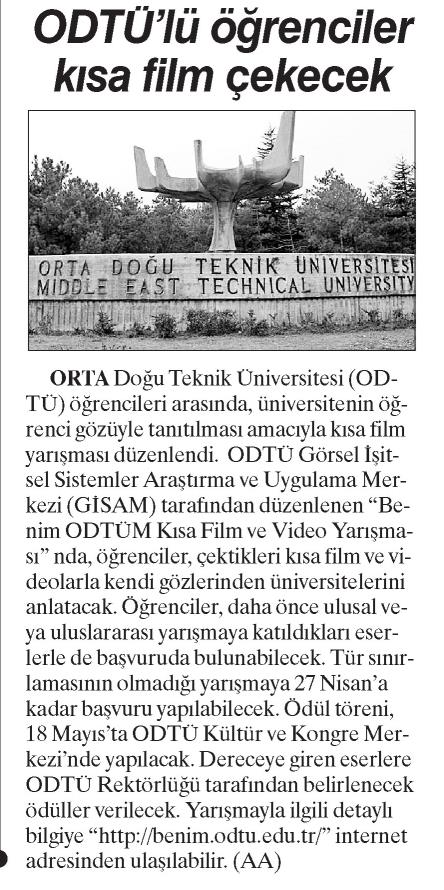 ODTÜ'LÜ ÖĞRENCİLER KISA FİLM ÇEKECEK