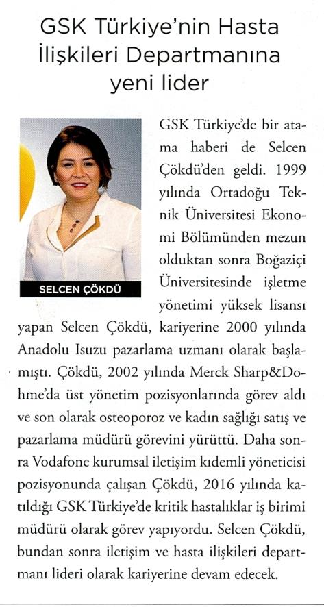 GSK TÜRKİYE'NİN HASTA İLİŞKİLERİ DEPARTMANINA YENİ LİDER