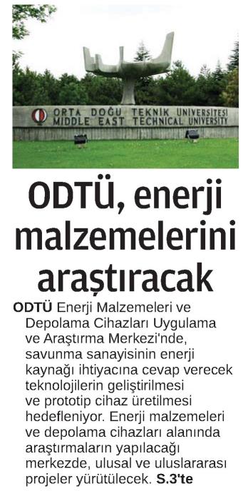 ODTÜ ENERJİ MALZEMELERİNİ ARAŞTIRACAK