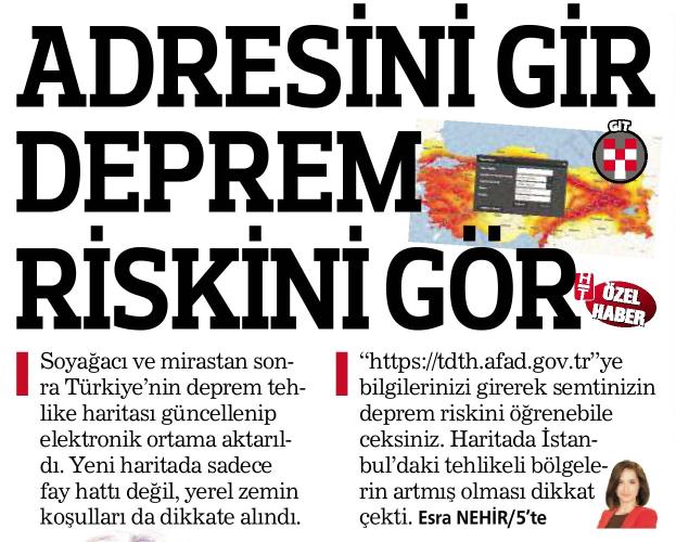 ADRESİNİ GİR DEPREM RİSKİNİ GÖR