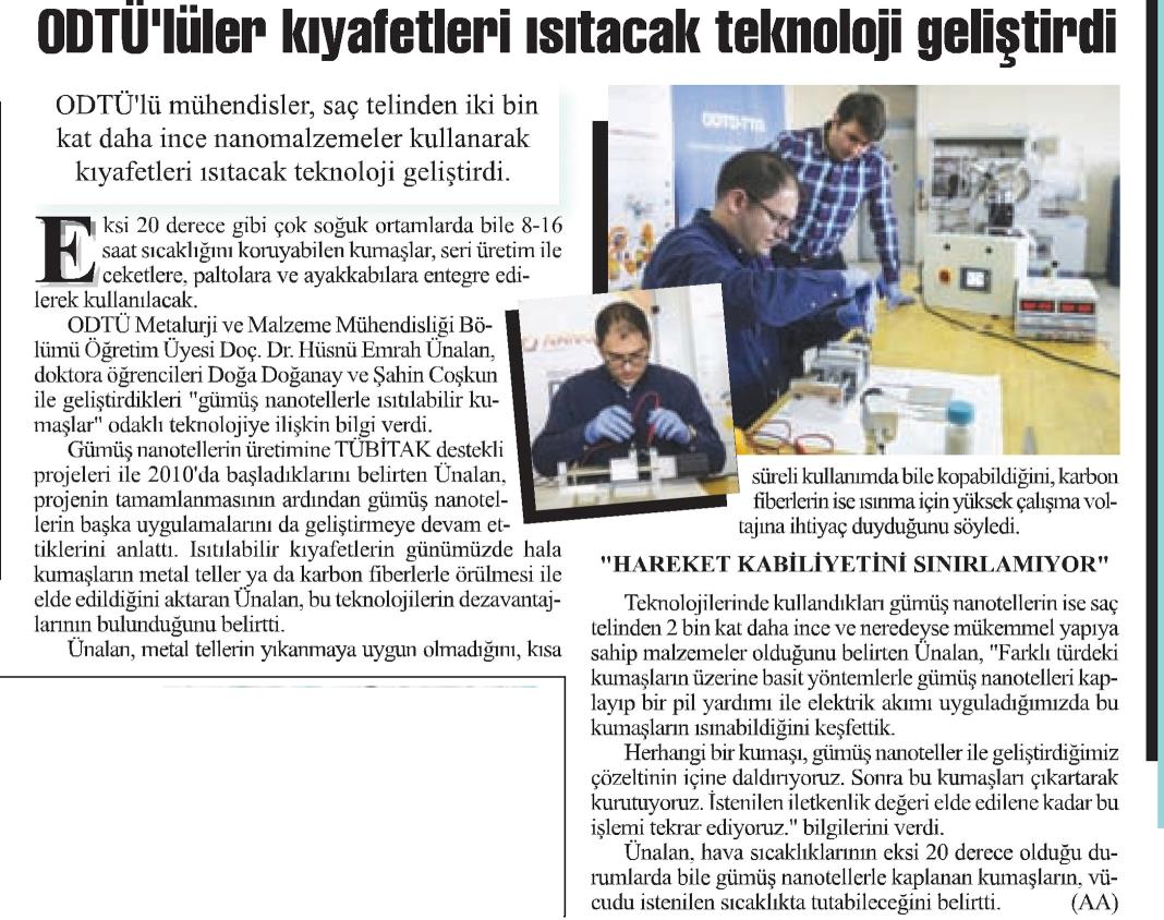ODTÜ'LÜLER KIYAFETLERİ ISITACAK TEKNOLOJİ GELİŞTİRDİ