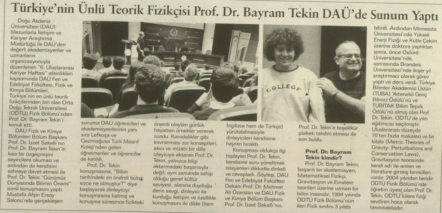 TÜRKİYE'NİN ÜNLÜ TEORİK FİZİKÇİSİ PROF. DR. BAYRAM TEKİN DAÜ'DE SUNUM YAPTI
