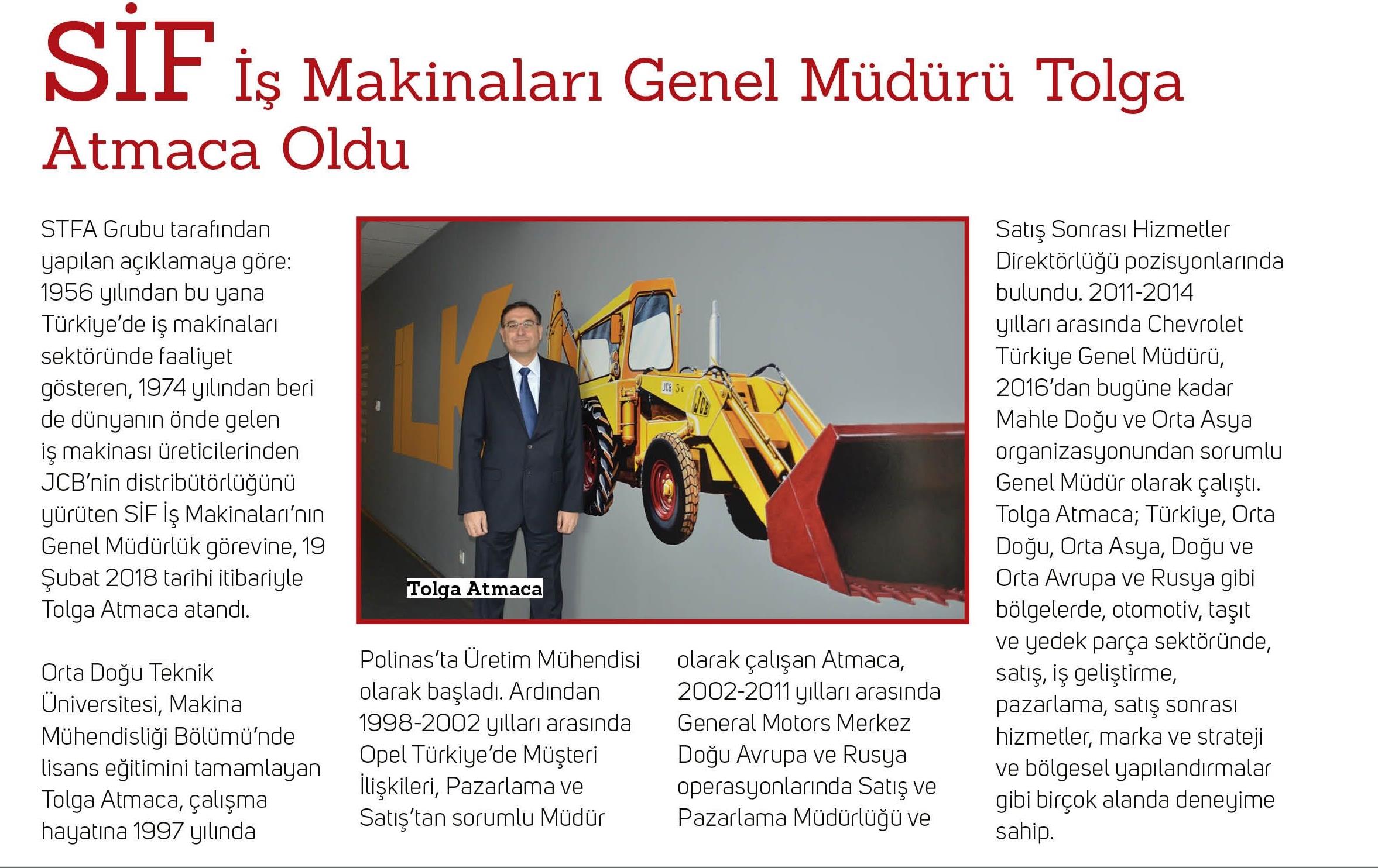 SIF İŞ MAKİNALARI GENEL MÜDÜRÜ TOLGA ATMACA OLDU