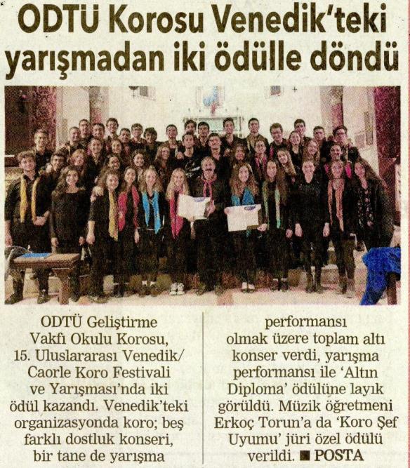 ODTÜ KOROSU VENEDİK'TEKİ YARIŞMADAN İKİ ÖDÜLLE DÖNDÜ