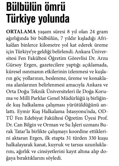 BÜLBÜLÜN ÖMRÜ TÜRKİYE YOLUNDA