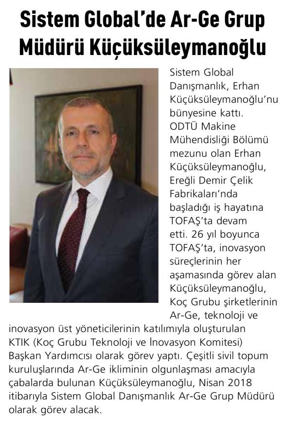 SİSTEM GLOBALDE AR-GE GRUP MÜDÜRÜ KÜÇÜKSÜLEYMANOĞLU