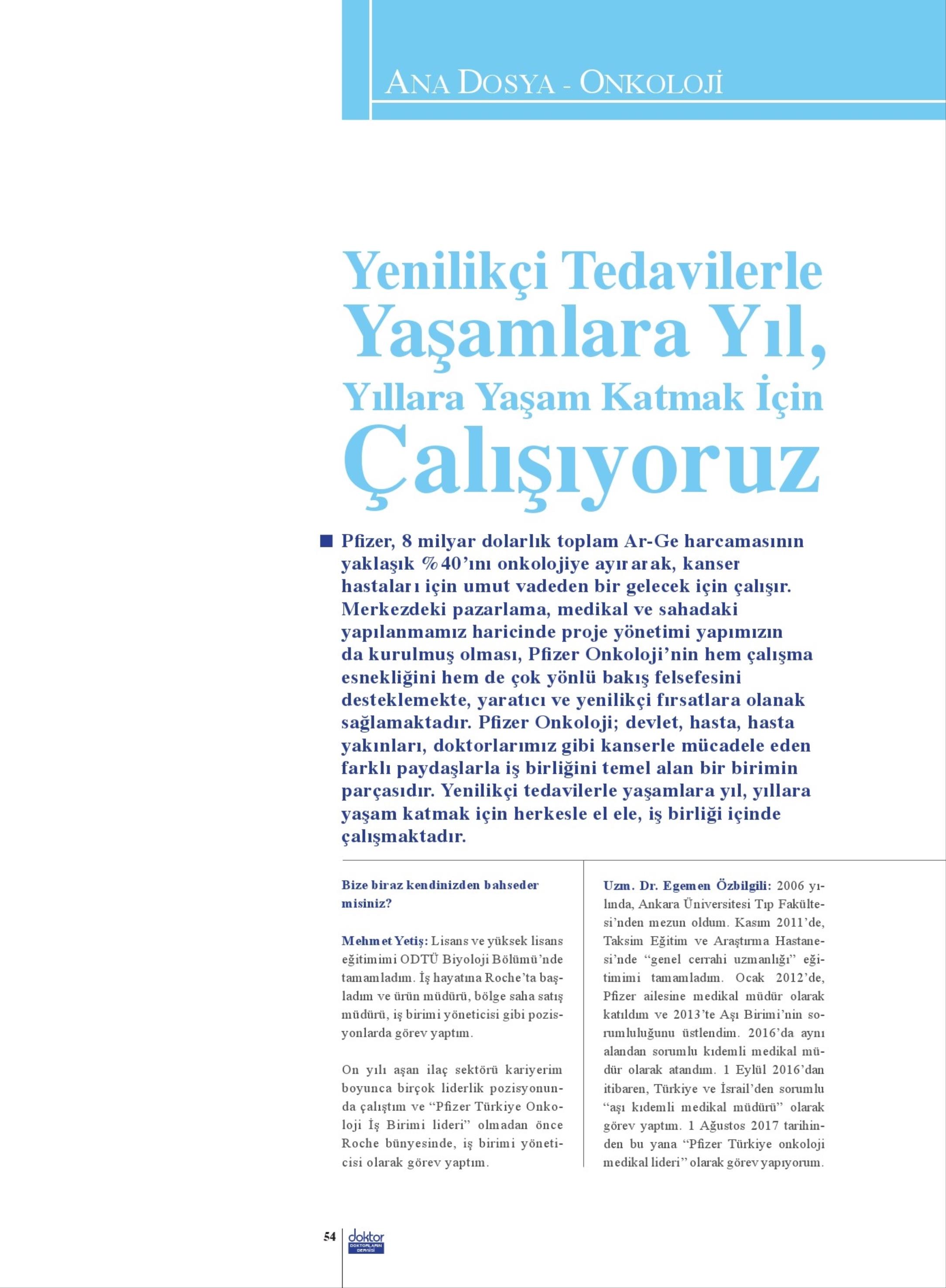 YENİLİKÇİ TEDAVİLERLE YAŞAMLARA YIL , YILLARA YAŞAM KATMAK İÇİN ÇALIŞIYORUZ