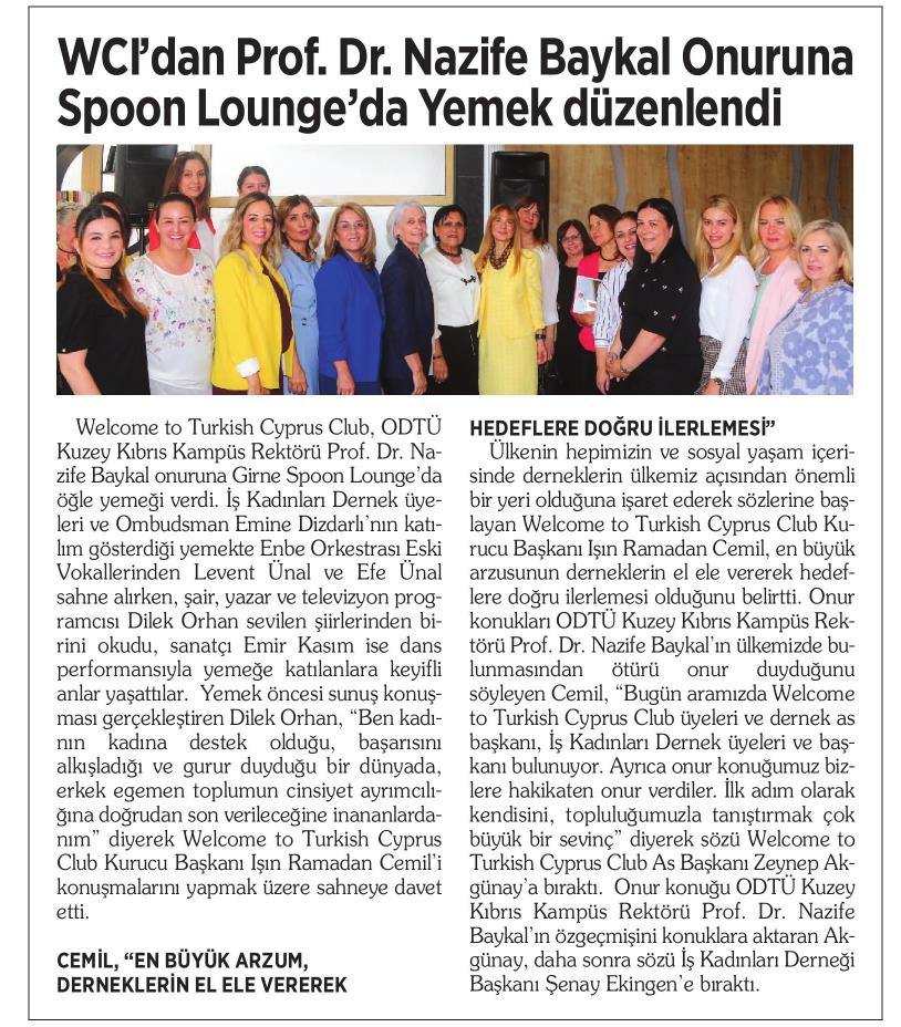 WCI'DAN PROF. DR. NAZİFE BAYKAL ONURUNA SPOON LOUNGE DA YEMEK DÜZENLENDİ