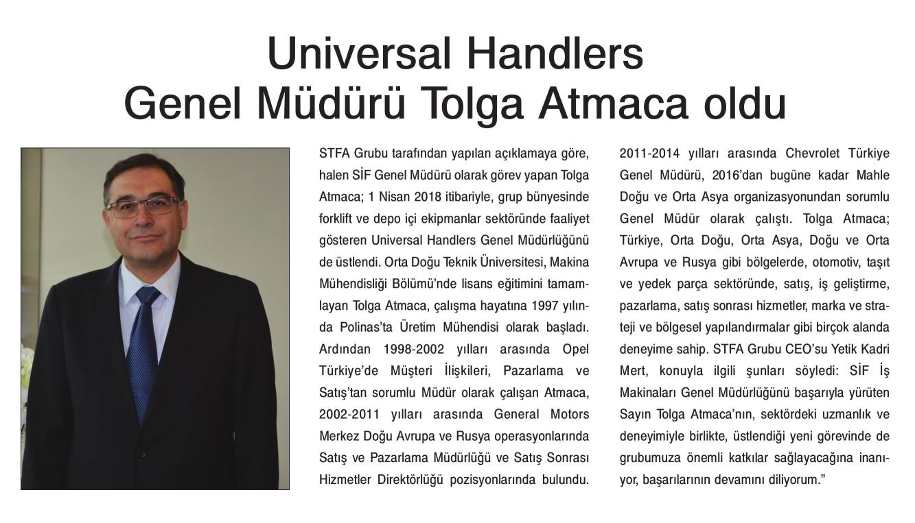 UNİVERSAL HANDLERS GENEL MÜDÜRÜ TOLGA ATMACA OLDU