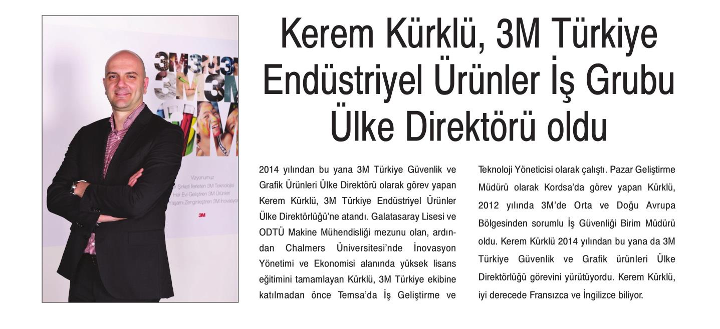 KEREM KÜRKLÜ, 3M TÜRKİYE ENDÜSTRİYEL ÜRÜNLER İŞ GRUBU ÜLKE DİREKTÖRÜ OLDU