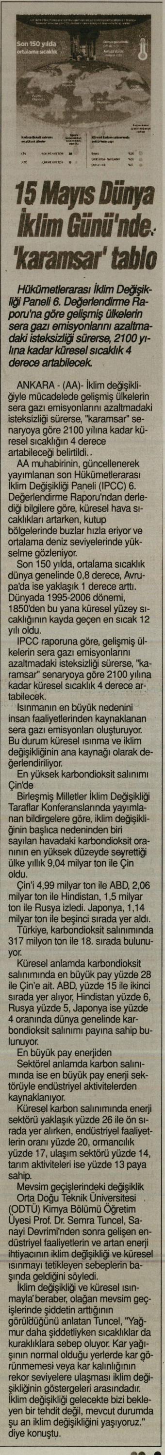 15 MAYIS DÜNYA İKLİM GÜNÜ'NDE 'KARAMSAR TABLO