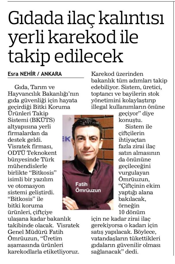 GIDADA İLAÇ KALINTISI YERLİ KAREKOD İLE TAKİP EDİLECEK
