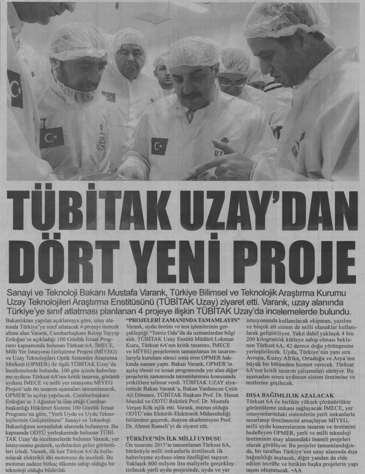TÜBİTAK UZAY'DAN DÖRT YENİ PROJE