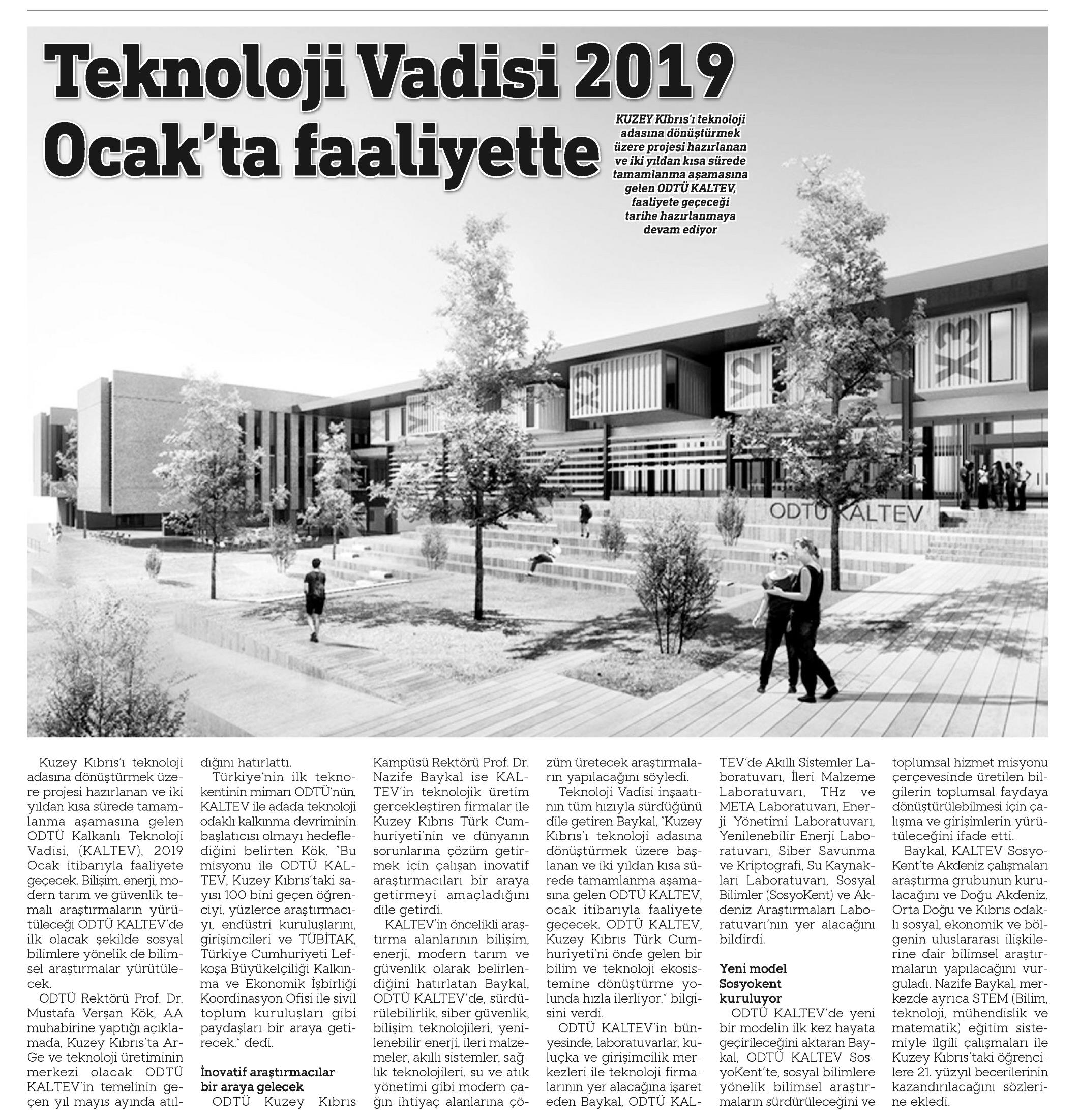 TEKNOLOJİ VADİSİ 2019 OCAK'TA FAALİYETTE