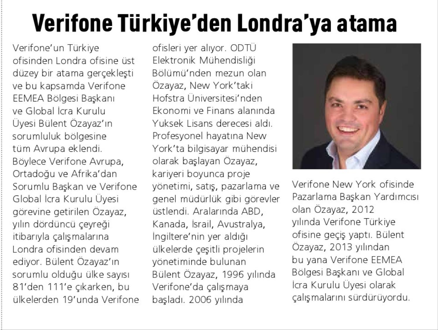 VERİFONE TÜRKİYE'DEN LONDRA'YA ATAMA