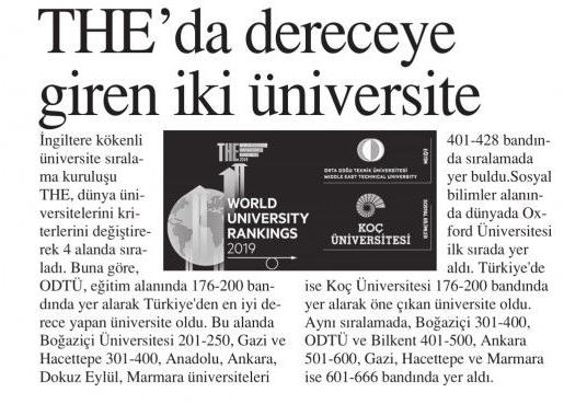 THE'DA DERECEYE GİREN İKİ ÜNİVERSİTE