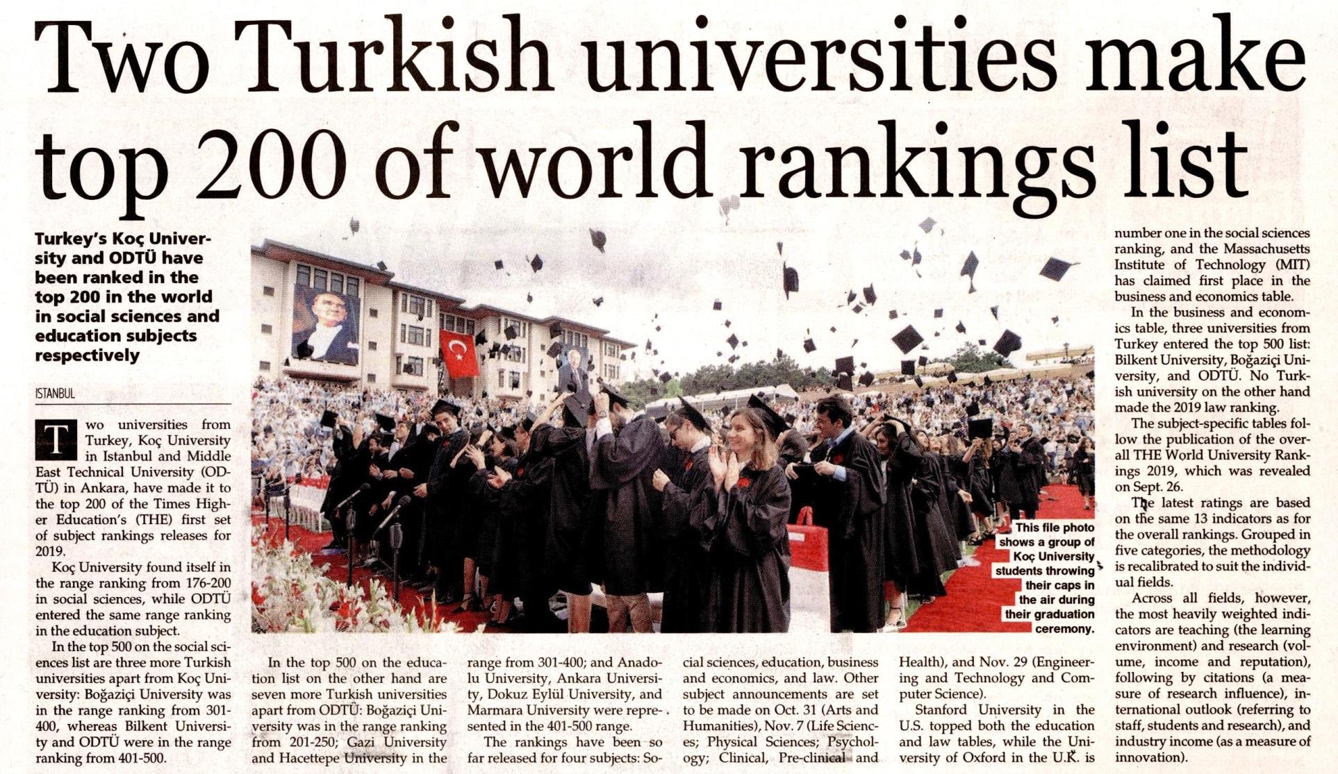 TWO TURKISH UNIVERSITIES IN TOP 200 LIST [Devam - 1]