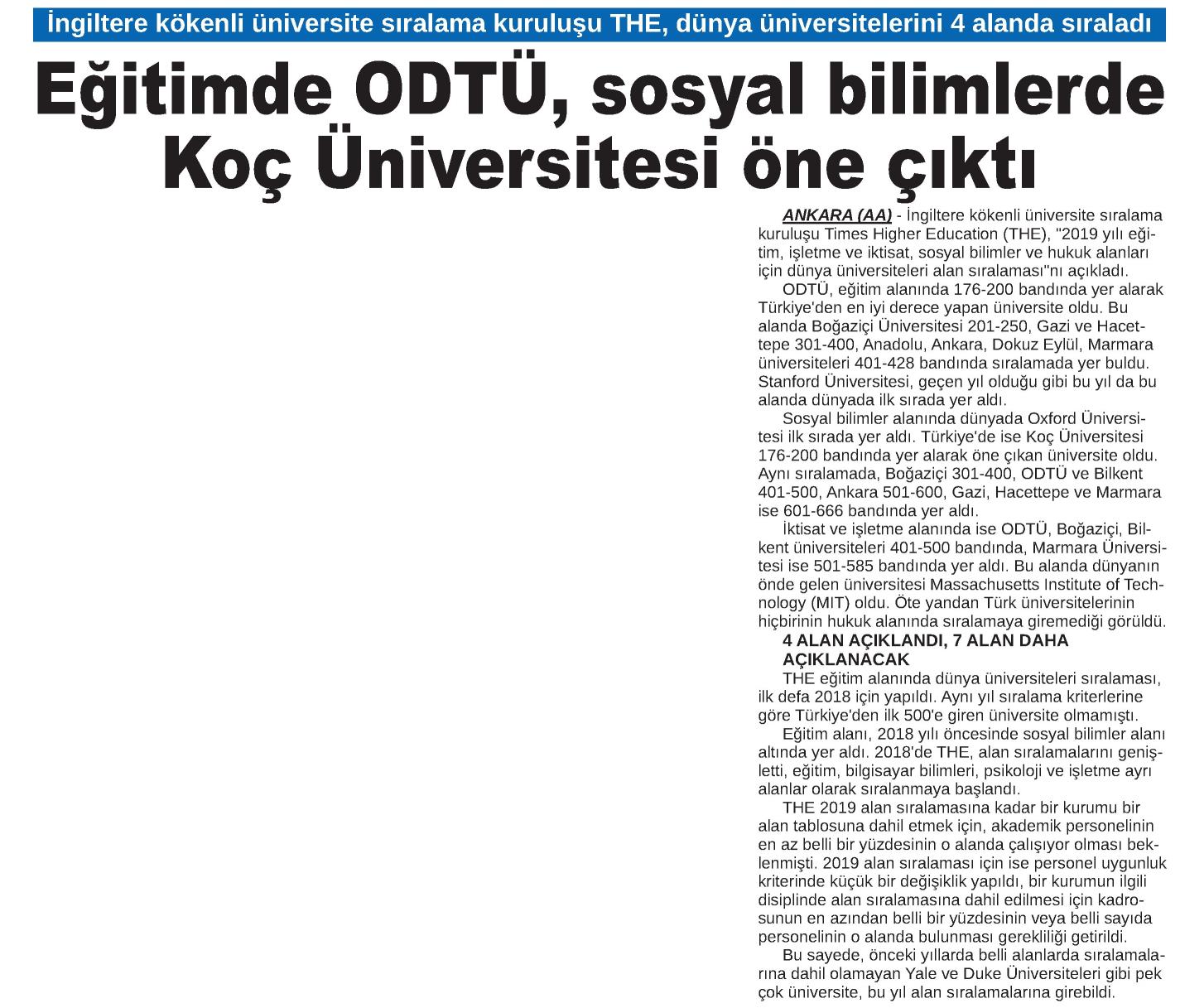 EĞİTİMDE ODTÜ, SOSYAL BİLİMLERDE KOÇ ÜNİVERSİTESİ ÖNE ÇIKTI