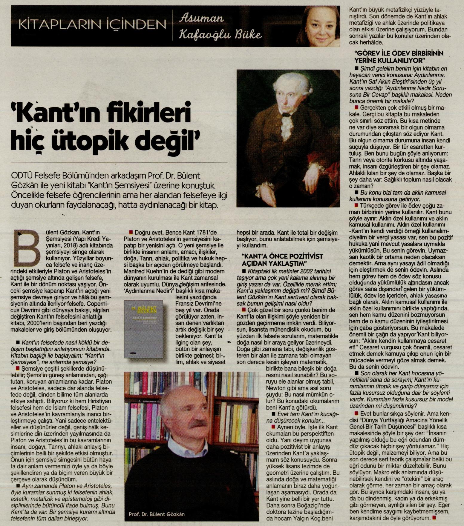 'KANT'IN FİKİRLERİ HİÇ ÜTOPİK DEĞİL'