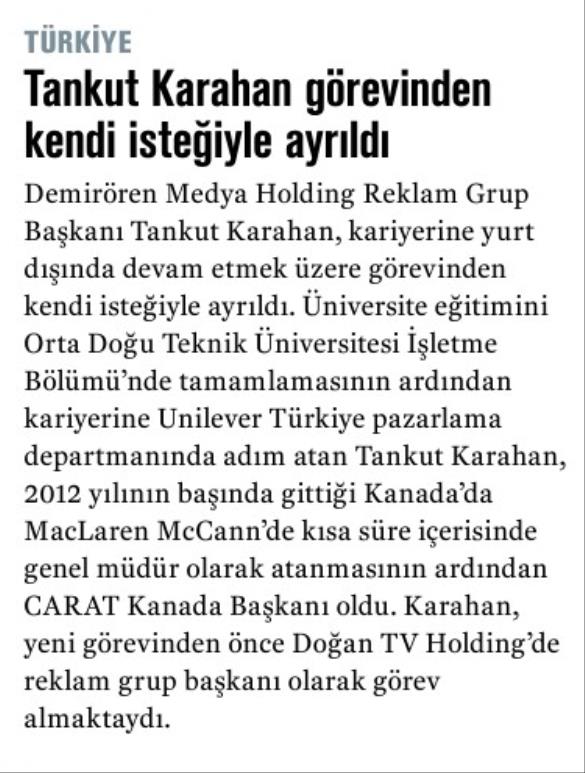 TANKUT KARAHAN GÖREVİNDEN KENDİ İSTEĞİYLE AYRILDI