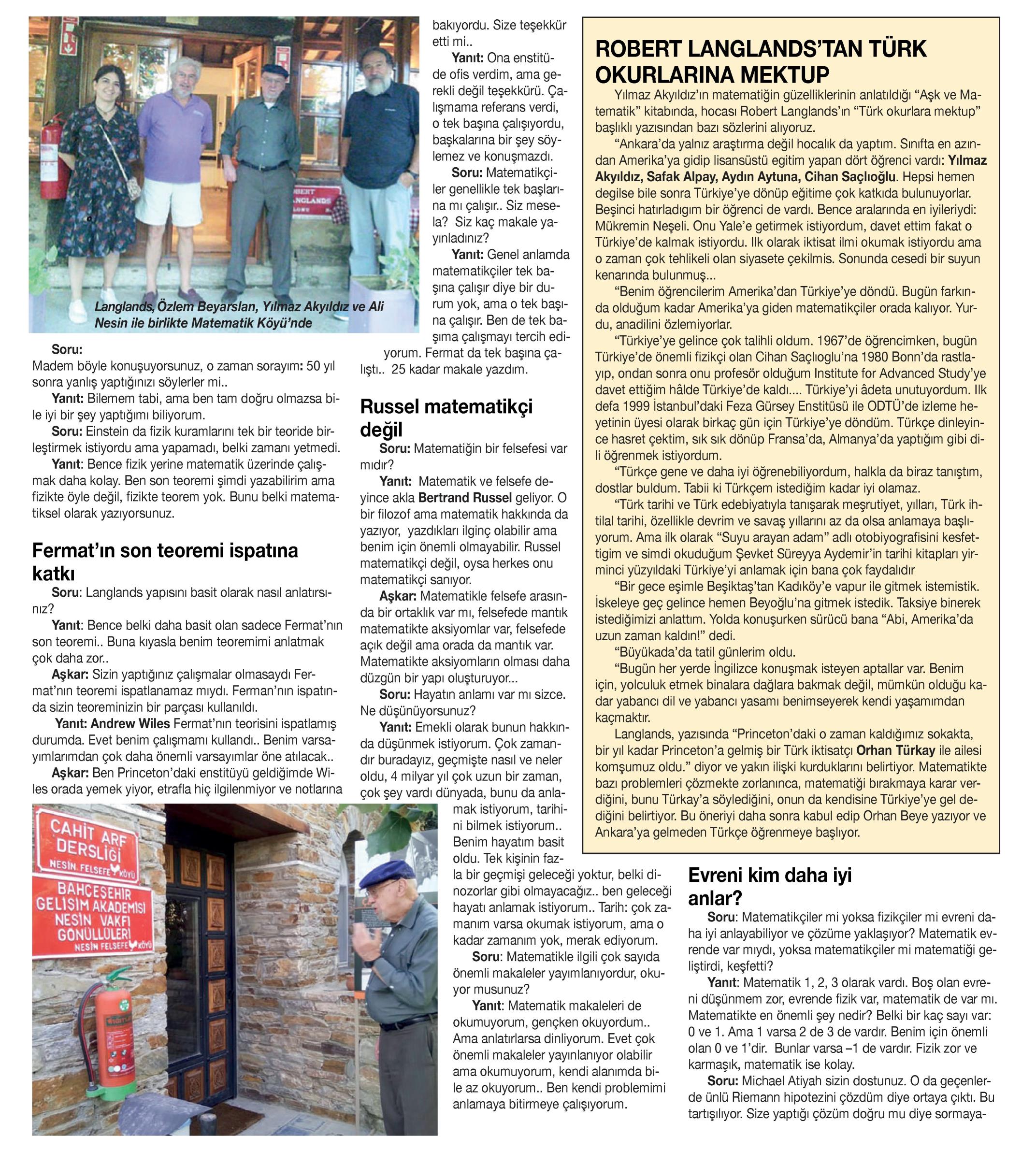 LANGLANDS , ANKARA'DA BAŞLATTIĞI ÇALIŞMALARIYLA ABEL MATEMATİK BÜYÜK ÖDÜLÜNÜ ALDI [Devam - 2]
