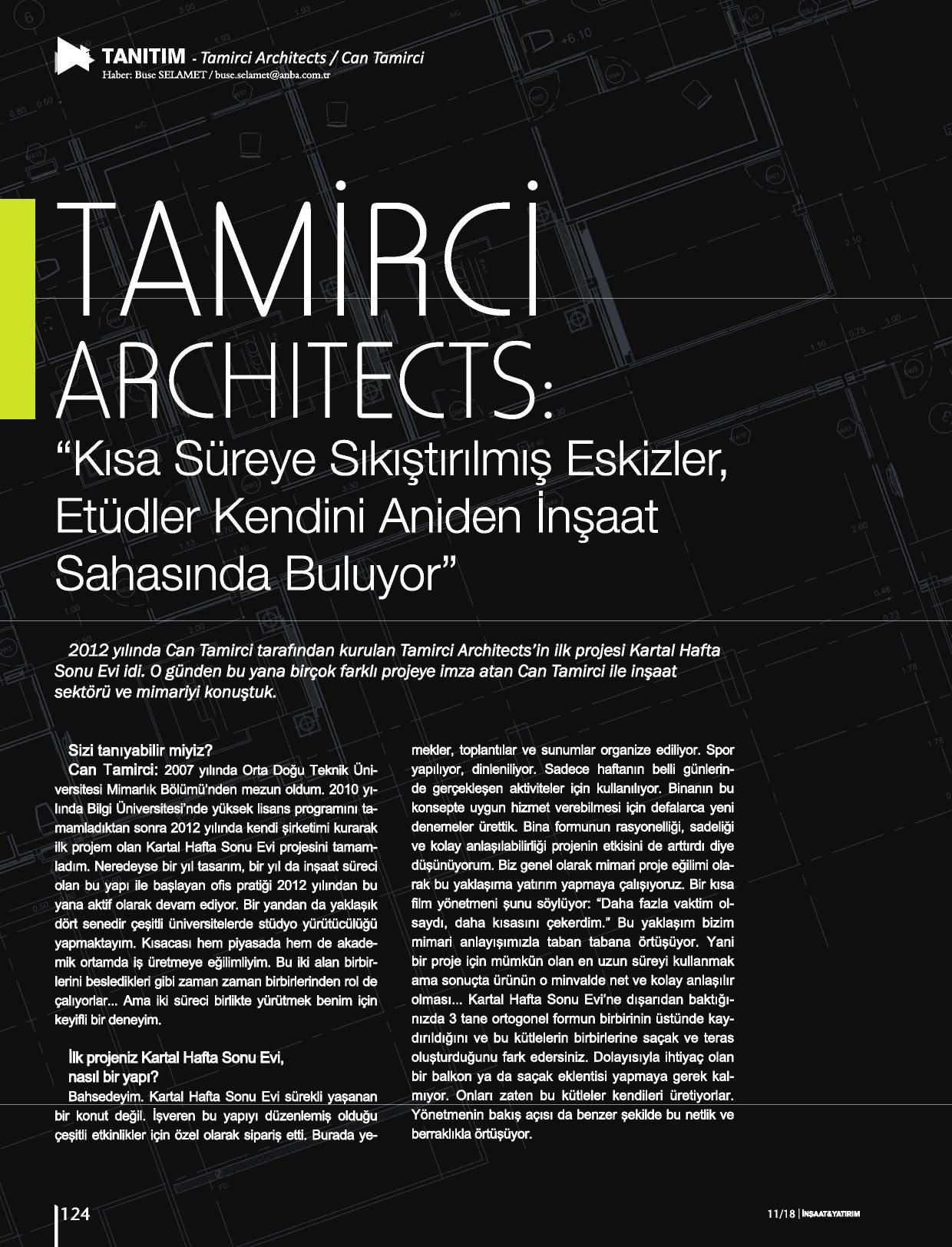 TAMİRCİ ARCHITECTS: "KISA SÜREYE SIKIŞTIRILMIŞ ESKİZLER, ETÜDLER KENDİNİ ANİDEN İNŞAAT SAHASINDA BULUYOR"